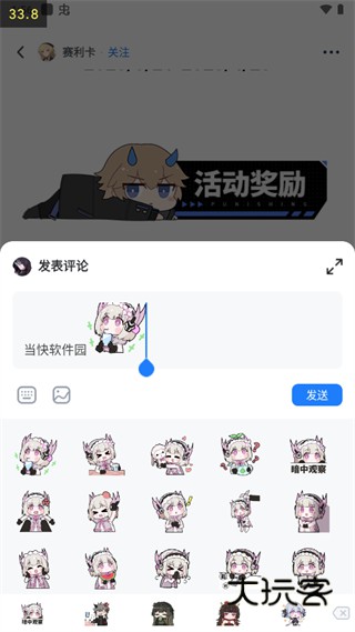 3、用户可以在社区内交流创作,分享游戏体验、玩法心得以及其他动态,比如创作一些同人插画、漫画或者同人文进行分享。发布帖子的格式很自由,可以是图文或者纯文,甚至是表情包(APP内已准备了大量的表情包素材),可以直接使用。