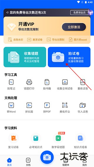 1、进入到软件之后点击拍试卷功能。