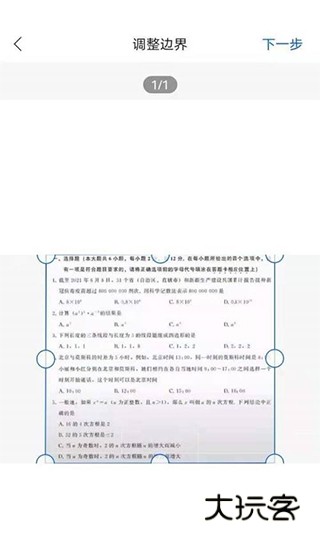 3、裁剪杂乱背景与手写的字迹,手机怕找自动识别试卷边缘,还原试卷本来样貌。