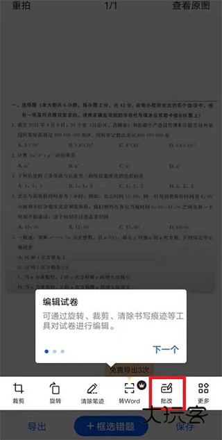 3、然后点击批改功能。