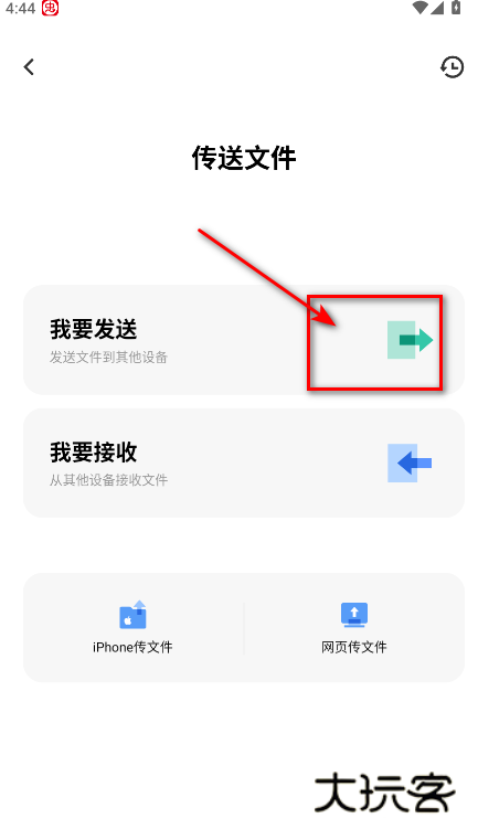 1.首先在发送文件的手机上点击传送文件