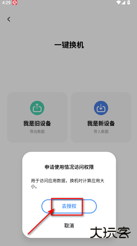 若进行一键换机,点击首页的“一键换机”图标,进入换机功能页面。
