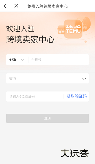 2、输入手机号、设置密码、输入验证码后,点击注册