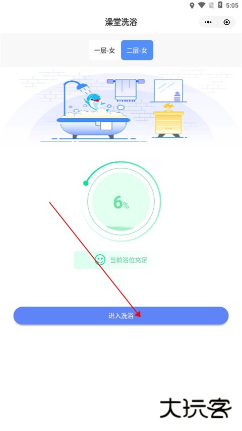 4、接下来点击进入洗浴选择位置即可开始洗浴。