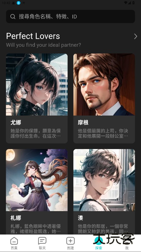 4、在探索内,你可以看见很多人物的介绍,以及可以搜索一个你想要的人物开始