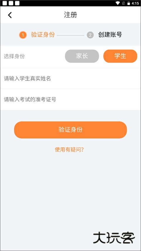 2、如果需要自行注册,登录app后直接姓名、和准考证号码,就可以进行注册,如果需要验证码找到班级主任要就可以了。