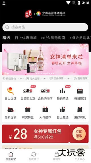 日上免税店是一款非常方便的手机购物软件,应用内的商品种类齐全,价格实惠便宜,用户可以在这里买到很多低价的大牌商品,而且应用使用起来非常的方便快捷,是一款大家都在实用的手机购物软件,快来下载体验一下吧!