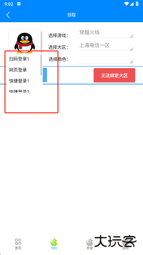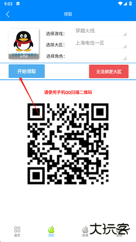 2、输入游戏信息,点击左上角的登录页面,选择扫码登录