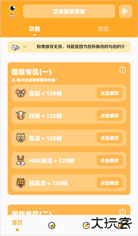 芝麻画质怪兽是一款非常实用的游戏辅助工具类软件,应用可以帮助用户的手机游戏画面变得更加流畅和高清,可以让玩家提要到优质的游戏体验,完全不需要考虑手机配置的问题,快来下载体验一下吧!