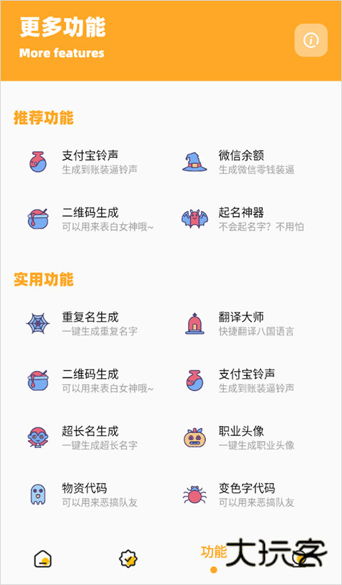 5、应用还提供多种小功能供用户使用,比如二维码生成、起名神器、物资代码等功能用户都可以来体验使用。