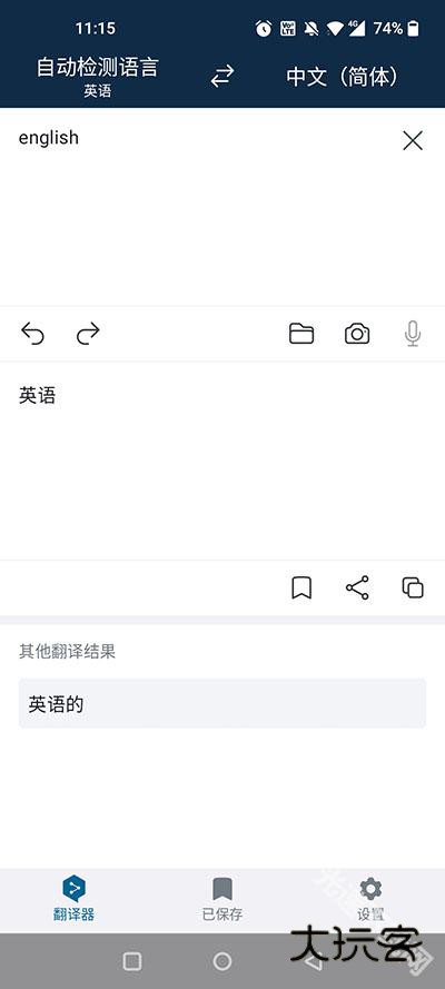 3、接下来可以在“已保存”的功能栏里面找到之前翻译的英文内容。