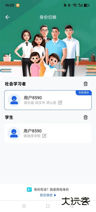 4、完成上述操作后,返回刚才的身份界面,可以看到多了一个学生身份。