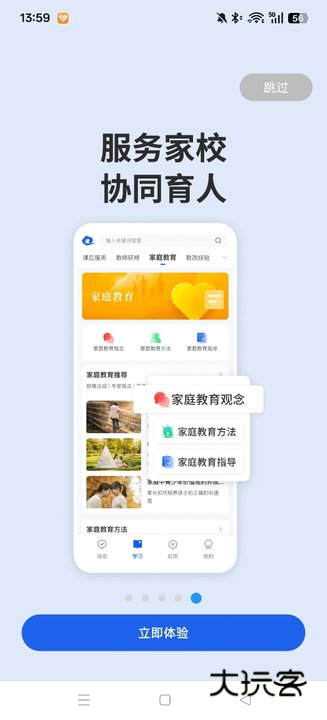 1、在本页面下载安装客户端打开,向右滑动页面跳过并立即体验。