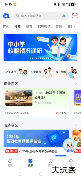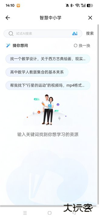 2、进入到AI的搜索频道,输入你要搜索查询的学习资源名称,或是点击下方推荐资源进行查找。