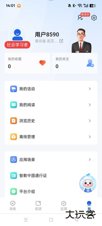 1、智慧中小学最新版本无需另外注册账号,可直接通过当前身份添加,在用户个人界面上方有一个小的人像图标,请点击。