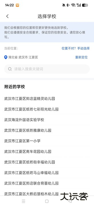5、在学生身份页面,授予应用的地理权限位置获取,在学校列表中,找到学生所在学校完成绑定即可。