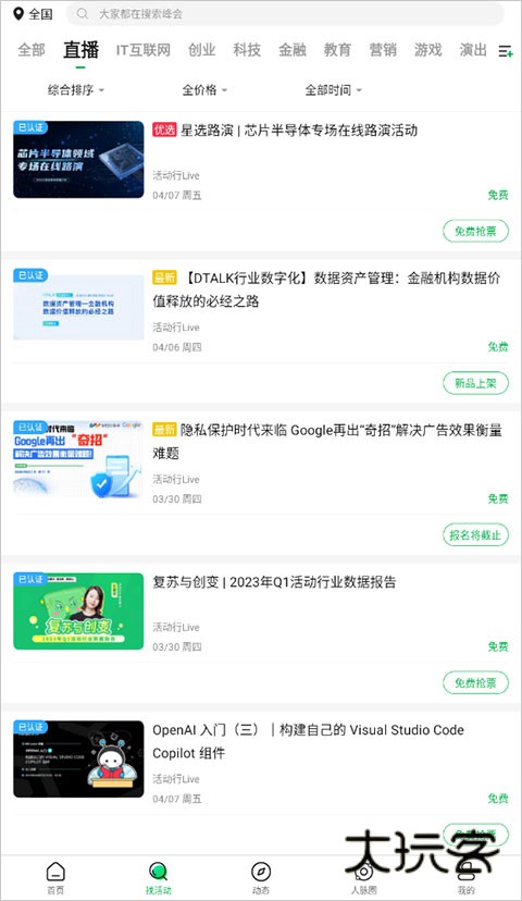 精英汇集,随时关注同行动态、热门会议和线下活动,透过活动构建人脉。