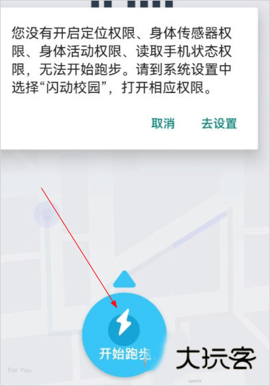 2、进入页面,设置权限,点击“开始跑步”即可。