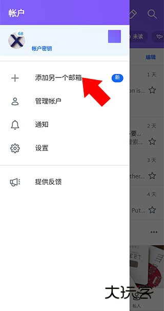 2、在打开的侧边栏中点击【添加另一个邮箱】