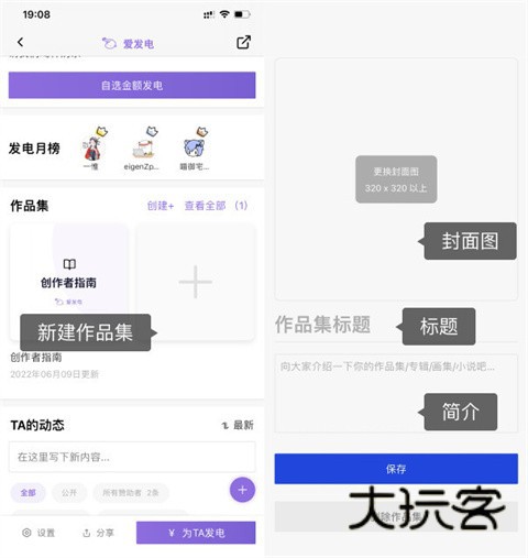 2、填写作品集的标题、封面图与简介(可选)并保存;