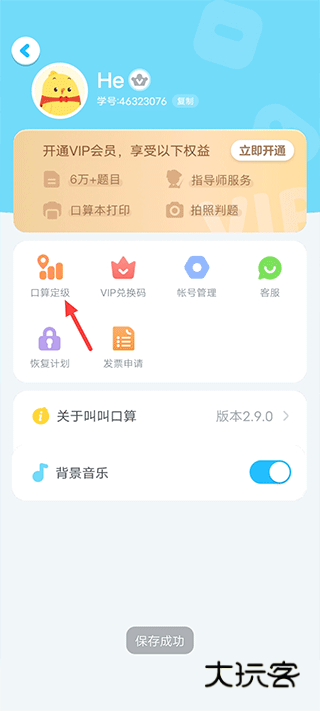 2、进入界面后,点击“口算定级”。