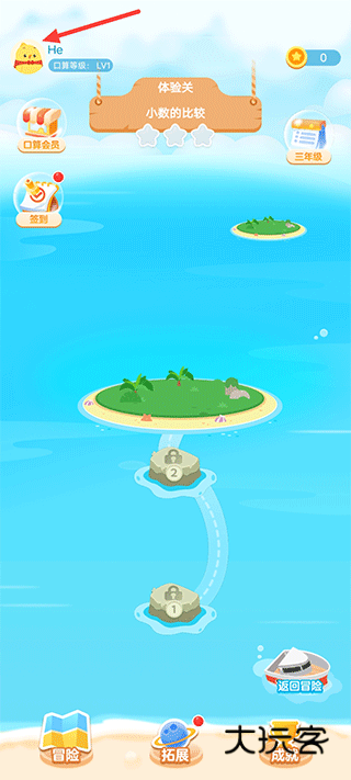 1、打开软件后,在冒险界面,点击左上角的头像。