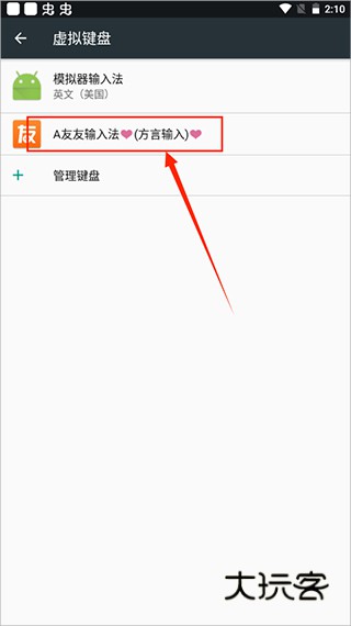 2、软件将调到手机键盘设置界面,将输入法设为友友输入法。