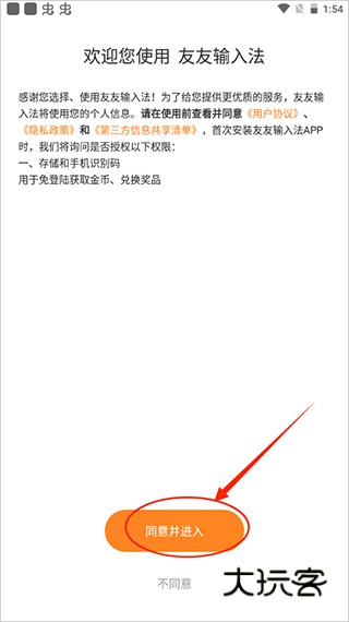 1、下载并打开友友输入法语音输入app,在引导界面点击第一步。