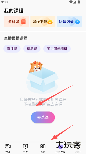 1、首先在中公教师app下,找到我的课程,在此页面内点击去选课。