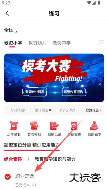 3、首页,点击页面内的题库练习。