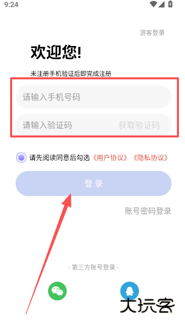 1、手机号短信验证注册进入。