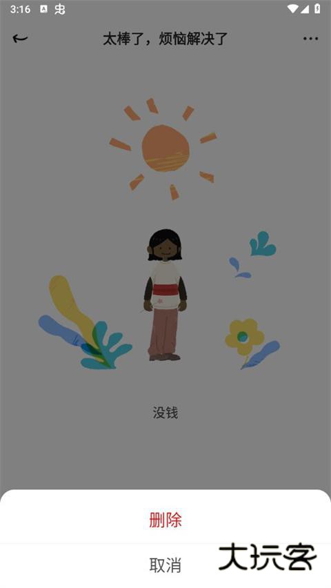 3、左右滑动,选择你已经解决的烦恼,然后点击右上角的三小点;