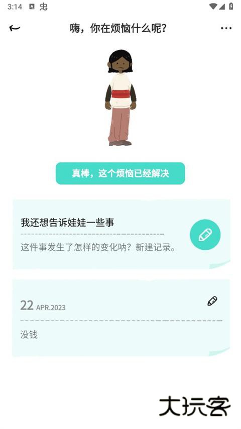 在这个软件中,你可以告诉娃娃你的烦恼,娃娃会听你说的一切,并会保存它,当你完成。