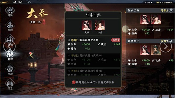 武将和坐骑都是有【羁绊】设定的,搭配合理的话,可以大大提升战斗力。