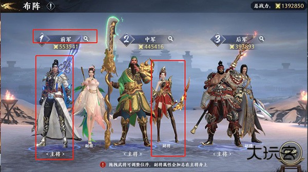 很多新入坑的朋友都会直接在【阵容】页面切换武将,进行搭配。但是这个页面的武将顺序,并不能作为主将、副将的出场顺序。如果想要调整主将、副将的搭配,以及各组武将的出场顺序,需要在【布阵】页面操作。