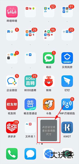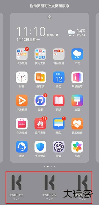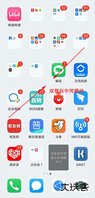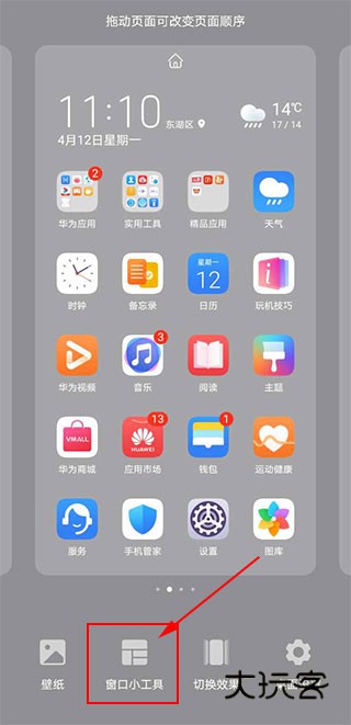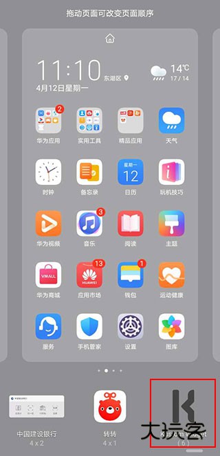 1、这里小编使用华为手机为例,下载完成kwgt pro插件后,在桌面上双指向中间滑动。