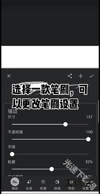 7、在描边进行时,用户可以选择一款笔刷去更改笔刷的设置,非常方便。