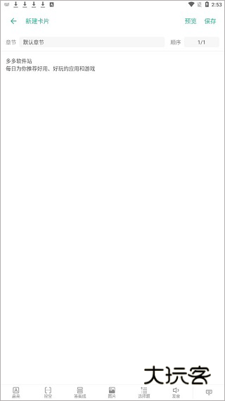 1、利用该工具可以实现知识卡牌呢的管理,在卡片的编辑上支持文字图片和声音编辑;