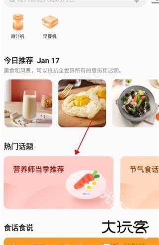 1、在手机上打开软件,在首页点击发现,下划屏幕找到“营养师当季推荐”