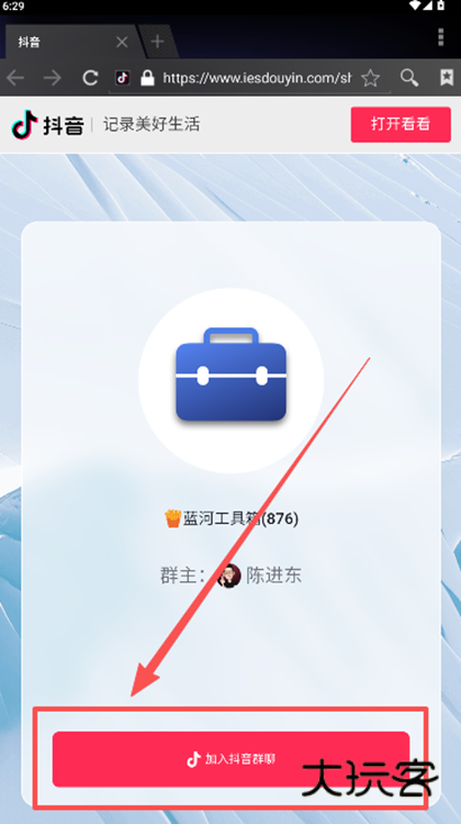 2、点击作者主页发布的抖音群聊,加入就行。
