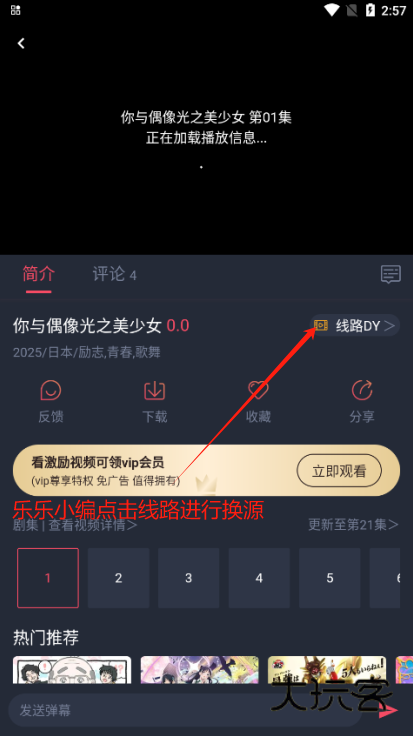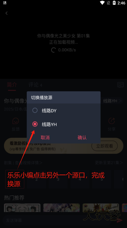 3、如果出现不能观看的情况,就跟着小编箭头进行点击打开换源界面