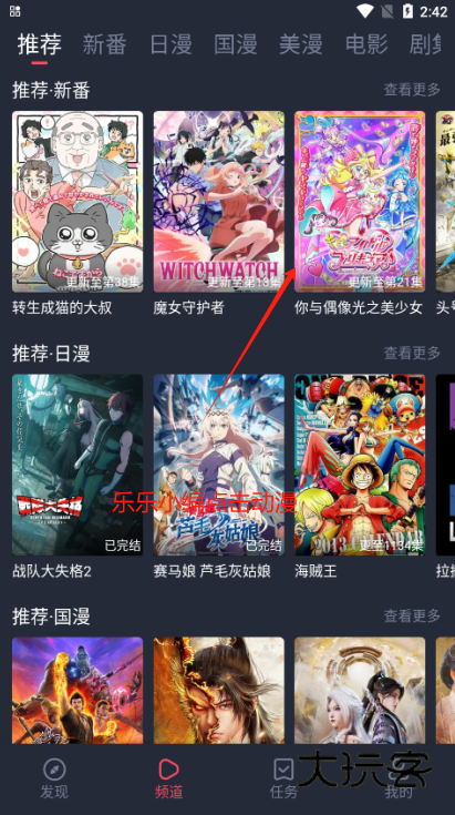 2、选择自己喜欢的动漫,点击进去进行观看