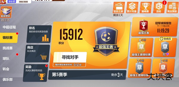 当你把阵容磨合到一定的程度以后PVP对战就是游戏里的最大乐趣,玩家可以透过锦标赛匹配到玩家进行对战不仅可以提升排名获得丰富的赛季奖励还可以积累获胜场次得到球探报告(球探报告可以抽取金卡)。