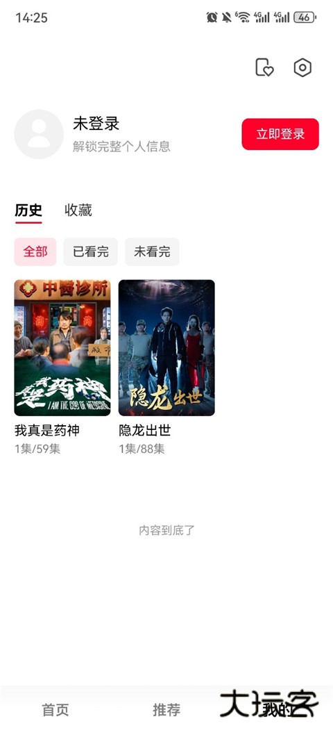1、围观短剧App无需要登录也可以观看短剧,观看过的内容将在历史中进行查看。