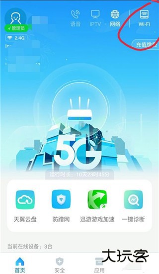 4、然后回到首页后找到图示右上角的“Wi-Fi”。
