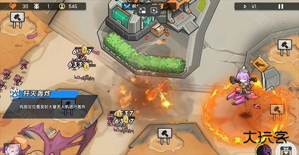 1技能:歼灭轰炸:向指定位置发射大量无人机进行轰炸