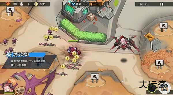 1、怪物会在红圈的地方出现,玩家需要在地上立着标牌的地方建设机关、发射炮和盾牌等武器。通过打怪获得金币,再用金币升级武器以面对下一波更强势的怪物。