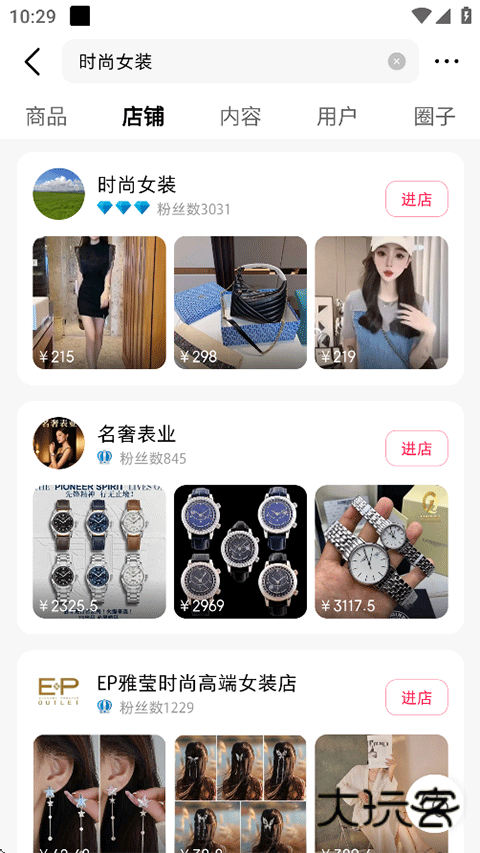 2、输入你感兴趣的店铺名,点击下方进店;