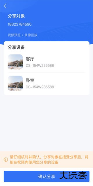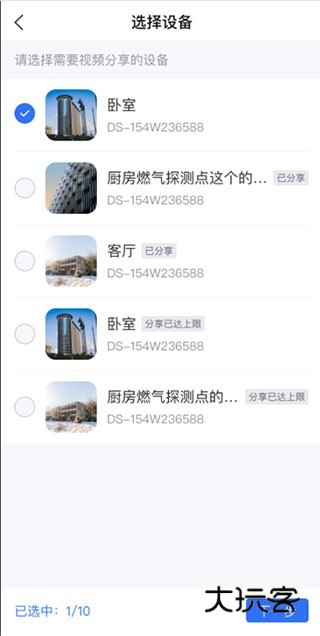 2、选择分享的设备:分享者可以在设备选择列表中查到设备是否可以分享