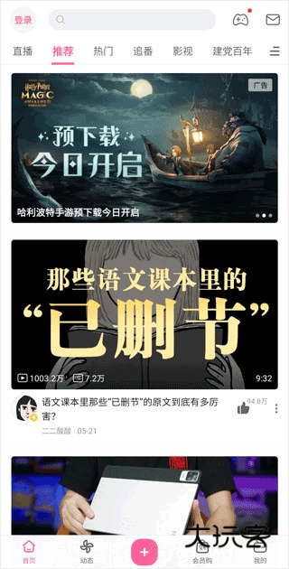 两者的界面似乎没有区别,仔细看,你就会发现右边的《bilibili》下方按钮没有「会员购」,而是「消息」。哔哩哔哩的消息则放在了顶部右上角。不止「会员购」,《哔哩哔哩》主页嵌在视频流中的广告,在《bilibili》也没有发现。特别是在最新版本的哔哩哔哩中,在底部添加了大大的加号之后,整个软件的功能繁杂,失去了当年的简介美好。而海外版却取其精华,去其糟粕,在保留基础功能的情况下,界面更加干净整洁。